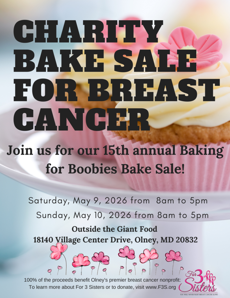Join us Mother’s Day weekend for our annual Spring charity bake sale. Take what you want and leave a donation in an amount that makes your heart happy knowing you’re helping someone with breast cancer.